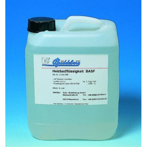 Solubilità in acqua: il liquido riscaldante BUDDE può essere miscelato con acqua in qualsiasi rapporto. la durezza dell'acqua non ha effetto sul liquido del bagno.