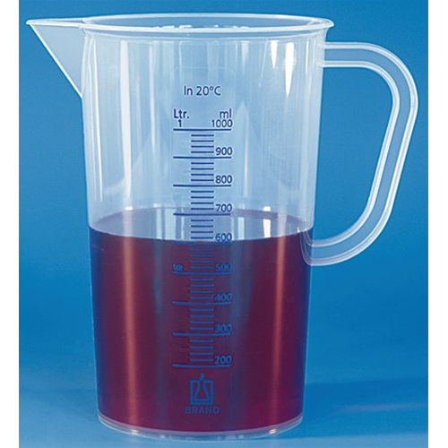 Graduated beaker, PP, embossed graduation, 500 ml: 10 ml, with handle and spout