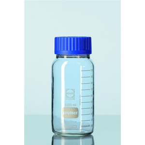 Bottiglie da laboratorio con identificazione lotto (Codice di Rintracciabilità), certificato disponibile online, con collo largo GLS 80® (AD 80mm). Vetro tipo I / vetro neutro conforme USP, EP e JP. Autoclavabile. Ideale per ogni applicazione con polveri o granulati, facile da riempire e svuotare. Il rivestimento DURAN® Protect è un rivestimento plastico resistente e trasparente, basato su un copolimero intrecciato. Complete con chiusure blu a sgancio rapido (PP, guarnizione integrale a labbro) ed anello salvagoccia (PP) per versamento e pulizia anti-goccia, lavoro sicuro.