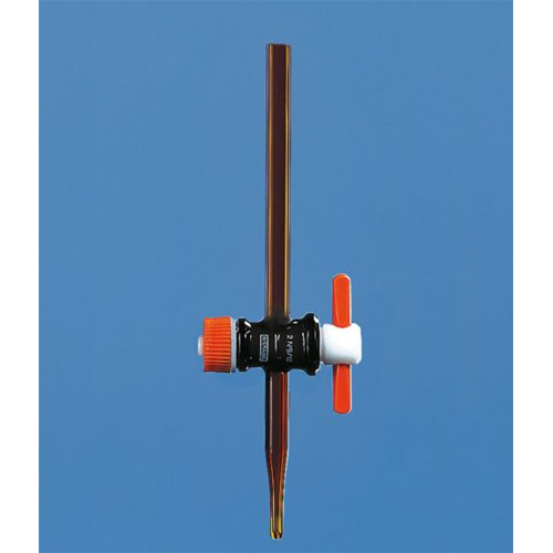 Burette stopcock, straight stopcock for burette cap. 50 ml, PTFE key, amber