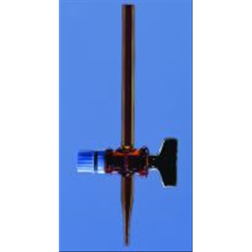 Burette stopcock, straight stopcock for burette cap. 25 ml, glass key, amber