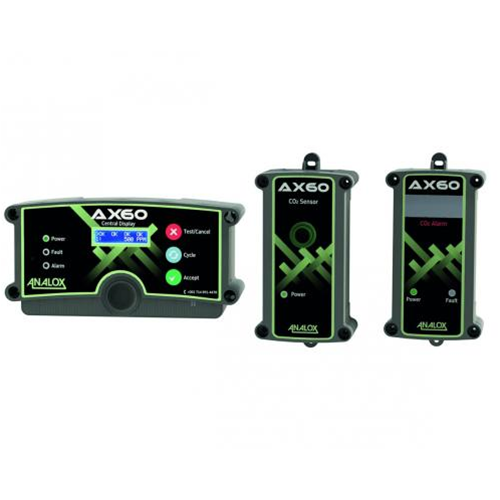 L'AX60 è composto da un'unità centrale di visualizzazione a parete, un sensore di CO2 e un allarme CO2 che può avvisare tempestivamente in caso di perdita di CO2.
