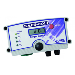 Safe-Ox+ä è un monitor di facile utilizzo, montato a muro per aumento e diminuzione di ossigeno, che ha 2 allarmi acustici/visivi che possono essere regolati al 23 % e 19.5 % O2, a significare che il personale del laboratorio ha il tempo di allontanarsi in caso di una perdita di gas.