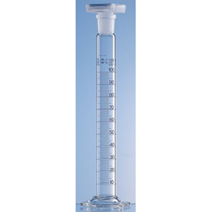 Mixing cylinder, BLAUBRAND®, A, DE-M, 50 ml: 1 ml Boro 3.3 NS19/26, PP stopper