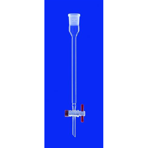 Prodotte con tubo DURAN®. Colonne cromatografiche di base con rientranza sopra al rubinetto per batuffolo di cotone, con raccordo NS, con rubinetto PTFE e dispositivo di ritenzione.