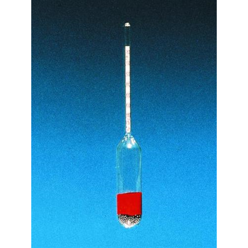 Di precisione. Con zavorra piombo. Per la misura della densità relativa di liquidi più leggeri e più pesanti dell'acqua. Tarati a 20°C.