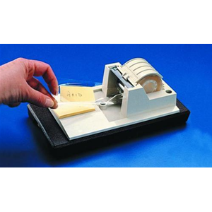 Dispensatore duraturo prodotto da forte plastica ABS con una stretta lama tagliente in acciaio; il rotolo del nastro viene tenuto in sede da un rullo in alluminio e un coperchio a molla. Include quattro piedini antiscivolo in gomma e viti. Dimensioni (L x P x H): 206 x 117 x 60 mm.