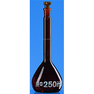 Volumetric flask, BLAUBRAND®, A, DE-M, 100 ml, Boro 3.3, NS 14/23, glass stopper, amber