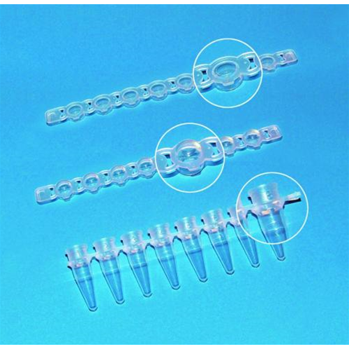 Con tappi separati. Strip da 8 o 12 microprovette da 0,2 ml. I tappi bombati (fornibili separatamente) sono anch'essi disponibili in strisce da 8 o 12. Questi assicurano una chiusura ermetica durante l'intero ciclo PCR ed evitano così le contaminazioni del campione. Ultra-sottili e consistenti pareti delle microprovette per un ottimo scambio termico lungo l'intera superfice esterna delle provette stesse. prodotte in polipropilene puro, vergine, esenti da RNase-, DNase- e DNA. Autoclavabili a 121°C (2 bar), secondo DIN EN 285.