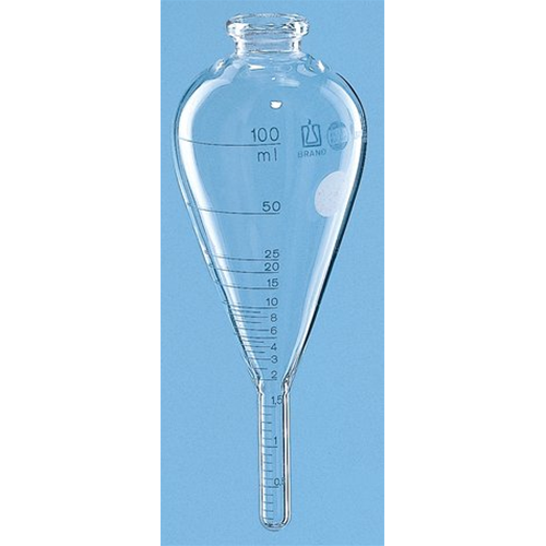 ASTM centrifuge tube, BLAUBRAND®, Boro 3.3, 100 ml, pear-shaped, cylindrical bottom, standard D96