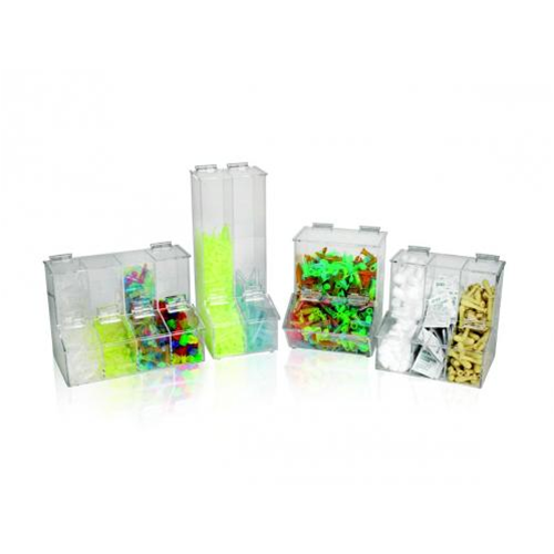 Bidone in cristallo chiaro che consente di vedere i piccoli oggetti all'interno. E' possibile vedere i livelli di inventario di puntali per pipette, provette, raccordi, ditali ed altre piccole cose sfuse. I coperchi sulle generose aperture rendono facile il riempimentoe la dispensazione e proteggono i proddotti dalla polvere. 4 dimensioni disponibili per soddisfare varie necessità di conservazione. Con piedini in gomma antisivolo.
