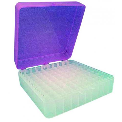 A 81 posti, griglia 9x9 e codifica numerica. Cerniere robuste con coperchio di sicurezza, impilabili, per trasporto di sicurezza. Retenzione di liquidi ridotta al minimo. Garantite prive di metalli. Resistenti a temperature da-90 °C - +121 °C, autoclavabili a 121°C, aperte, per 20 minuti.