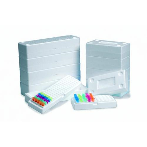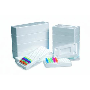 Sistema economico di stoccaggio in congelatore. Supporti leggeri, per microprovette da 1.5 -2.0 ml, ideali per studi a lungo termine o conservazione provette. Supporto in due parti, costruiti in schiuma espansa di polistirene (EPS). Lo spazio extra tra i pozzetti consente una facile presa delle provette con le dita. I supporti si possono impilare in modo sicuro grazie ai caratteristici ''nidi'' sul coperchio e sulla base.