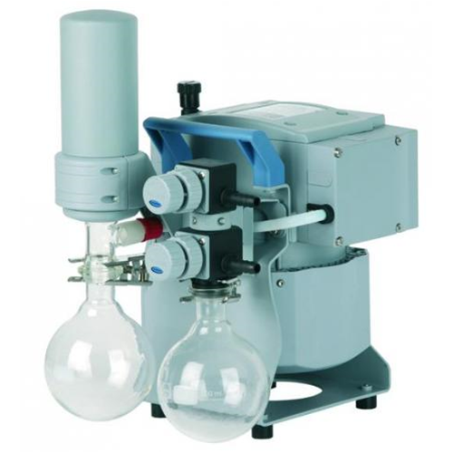 MV 10C NT +EK: Pompa a diaframma a 4 stadi con condensatore per vapori esausti. Vuoto finale 0.9 mbar. Per necessità di vuoto finale e velocità di pompaggio particolarmente elevate in laboratori chimici, impianti pilota o piccole unità produttive.