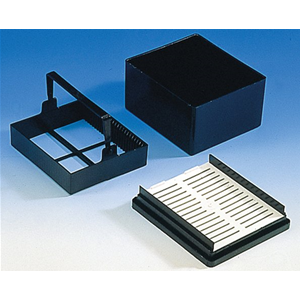 Trays for staining troughs, POM, 190 x 166 x 40 mm, for 25 slides 76 x 26 mm